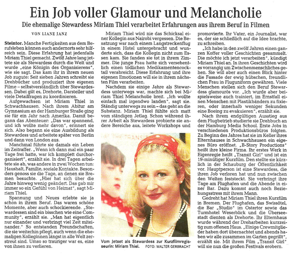 - Bremerin produziert Stewardessen-Film, (German, PDF)